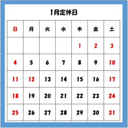 1月の定休日になります。